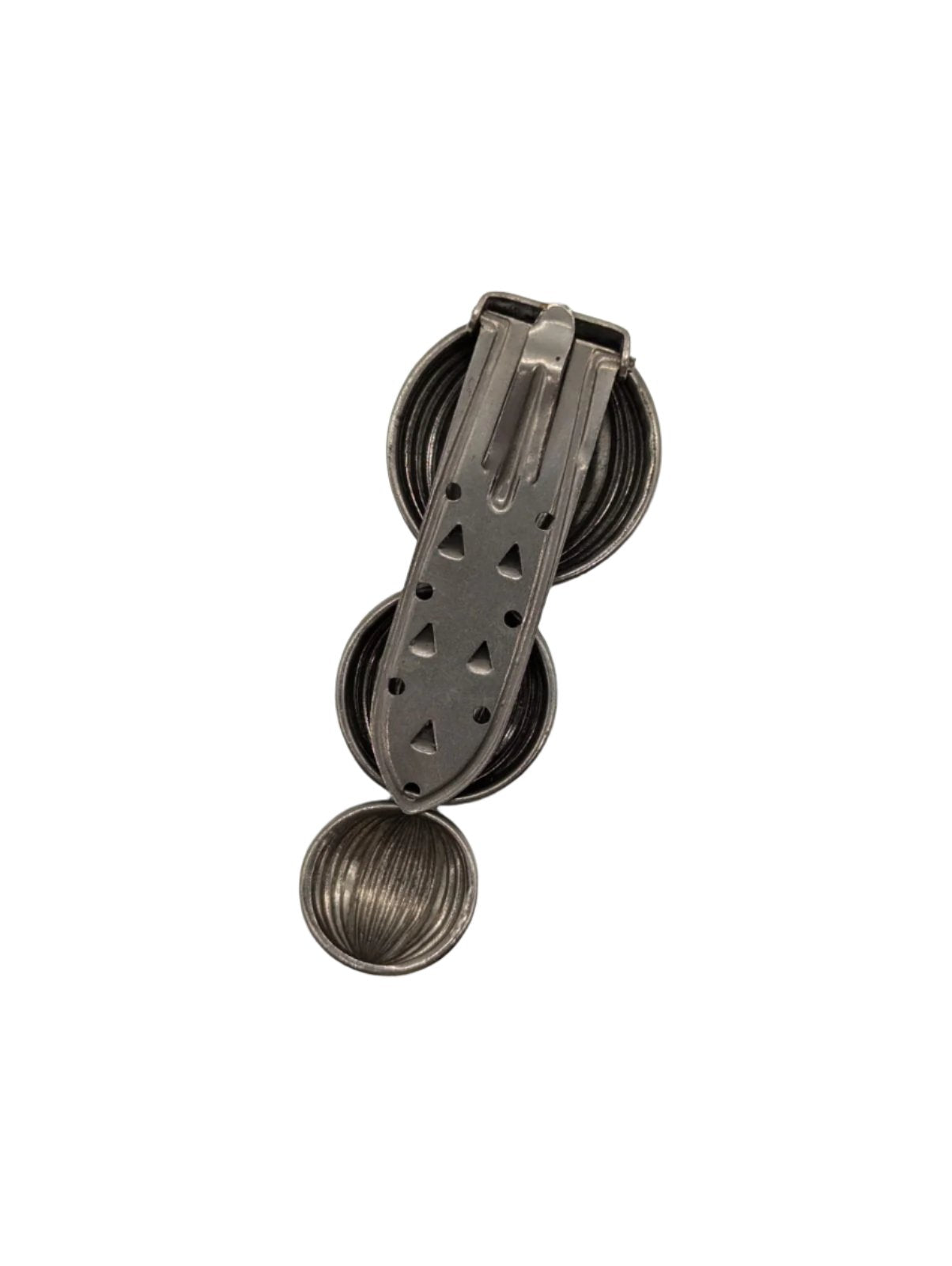 Made from silver-toned metal with a textured surface, the Trio of Edge brooch clasp can also be your go-to piece for layering alongside other accessories for an unexpected twist. This versatile brooch seamlessly fits into both high-fashion and streetwear aesthetics, adding just the right touch of cool sophistication.