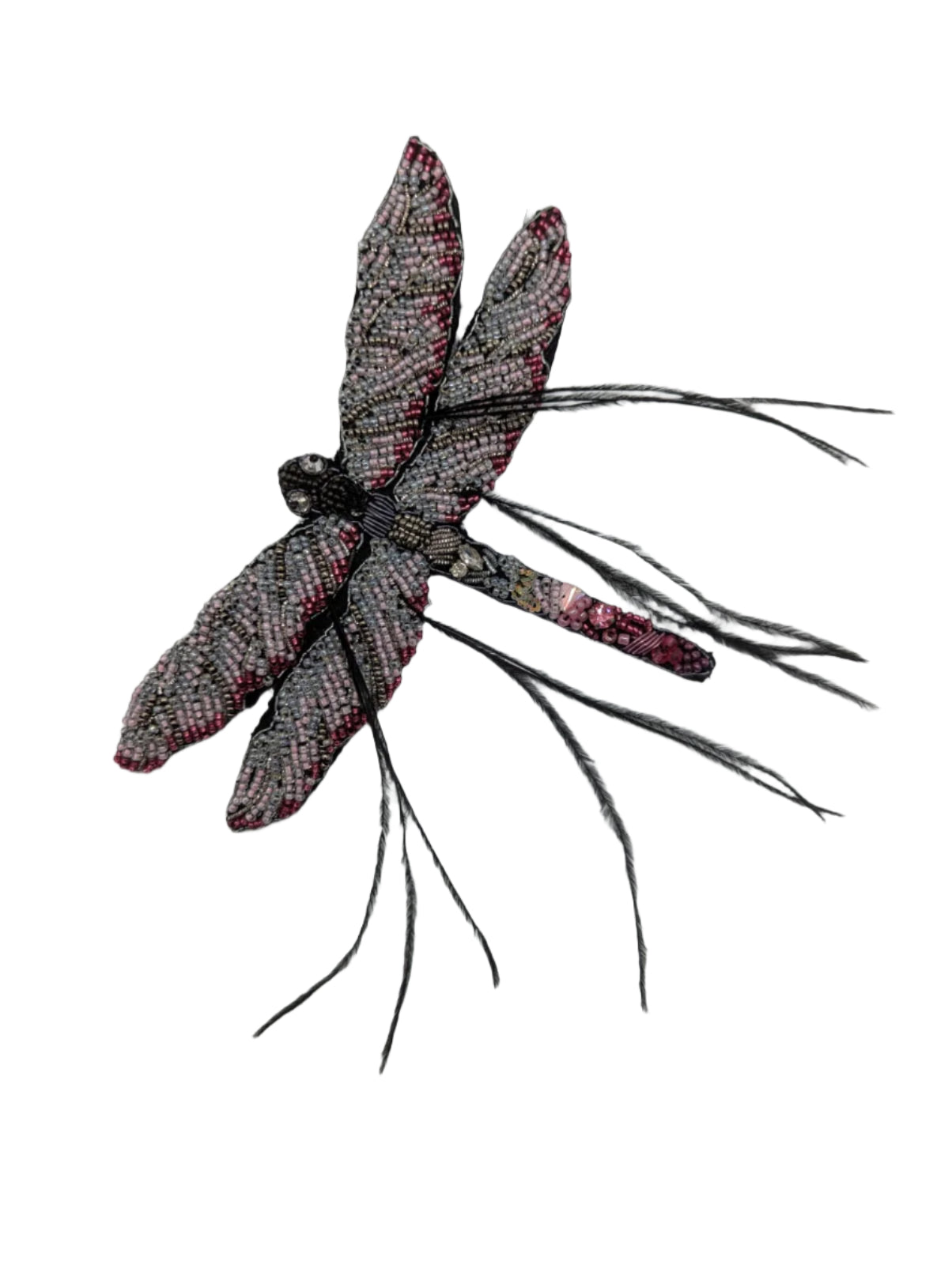 Each "Dragonfly" brooch is meticulously handcrafted, ensuring slight variations that make every piece truly unique. Handle with care to maintain its intricate beadwork and delicate tassel detailing.