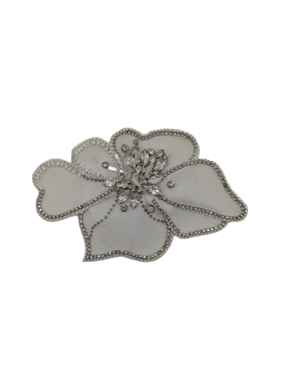 It's all about being unique! Bring an elegant but glamorous vibe to your evening looks with this stunning Fiore Koi embellished motif. Made with eye-catching crystal, sequins and embroidery details, this piece won't ever let you get unnoticed. Featuring hand-made sequinned petals, beaded centre and satin ribbon tie. Leather base on large size and linen base on Small size. The Fiore Koi can also be worn in hair.