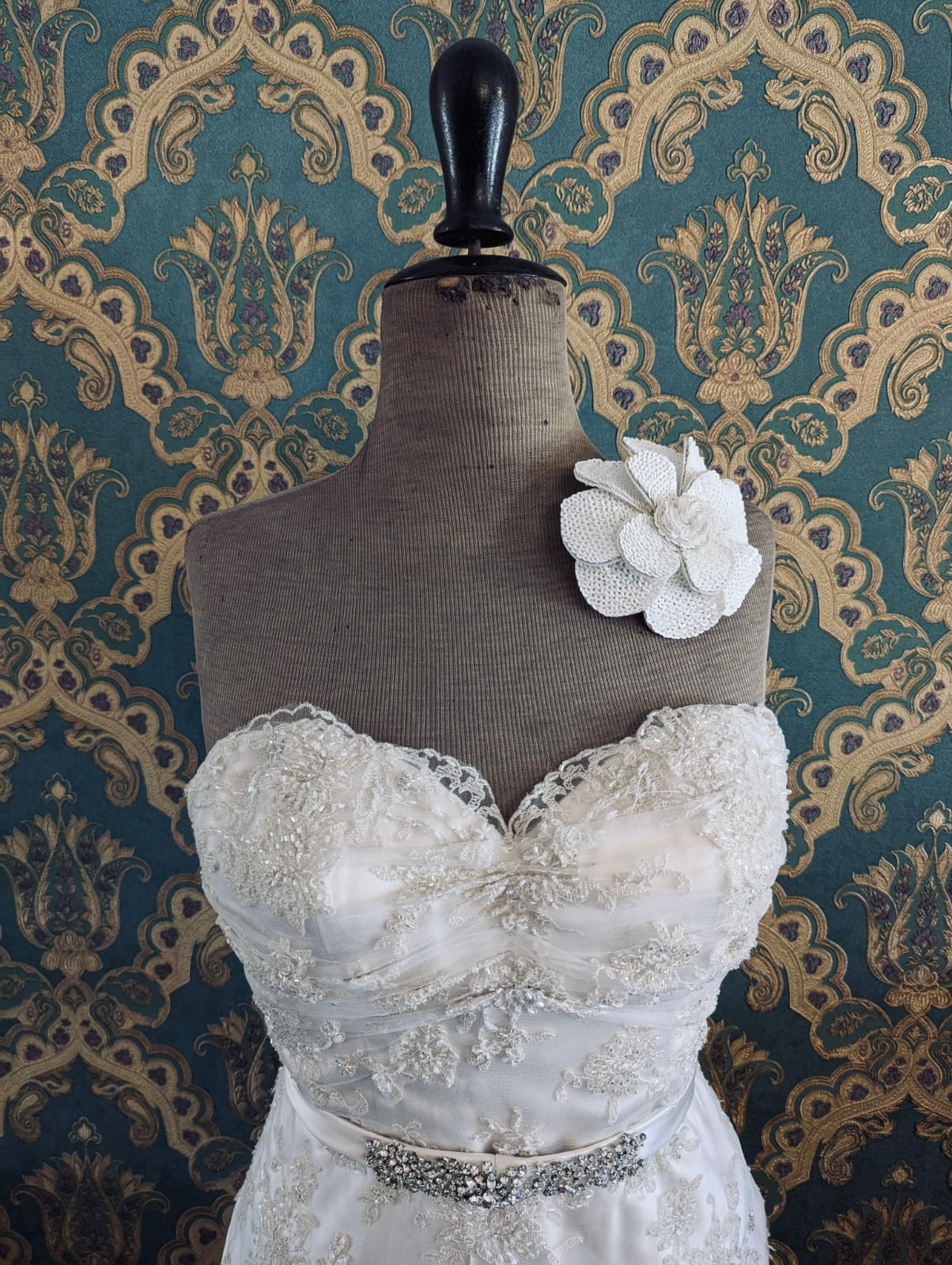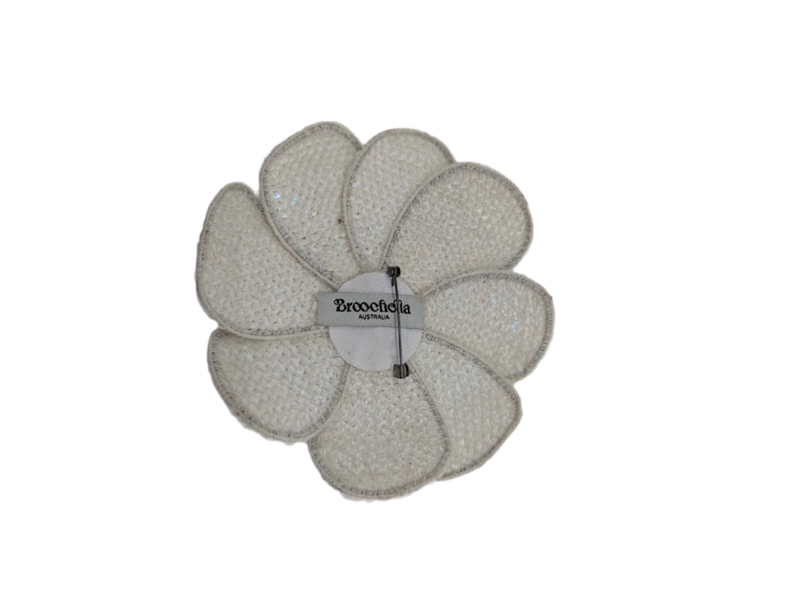 The "Scintillante" brooch, meaning "sparkling" in Italian, is a radiant piece of artistry crafted to make your wedding day unforgettable. This exquisite brooch, adorned with shimmering sequins and beads, forms a delicate floral motif that exudes timeless elegance. Inspired by the intricate beauty of a bride’s glow, "Scintillante" captures the romance and joy of the most special day in your life.