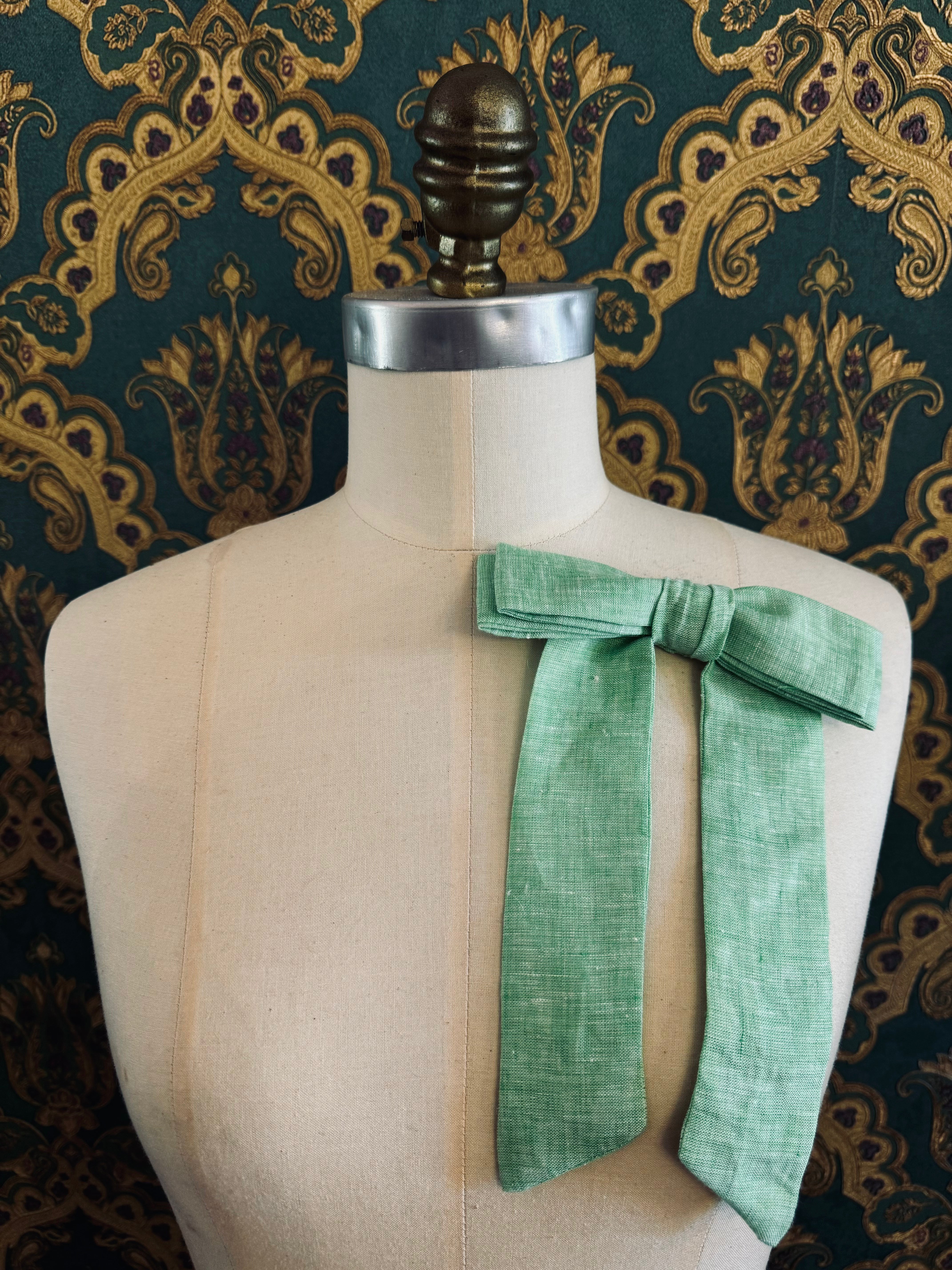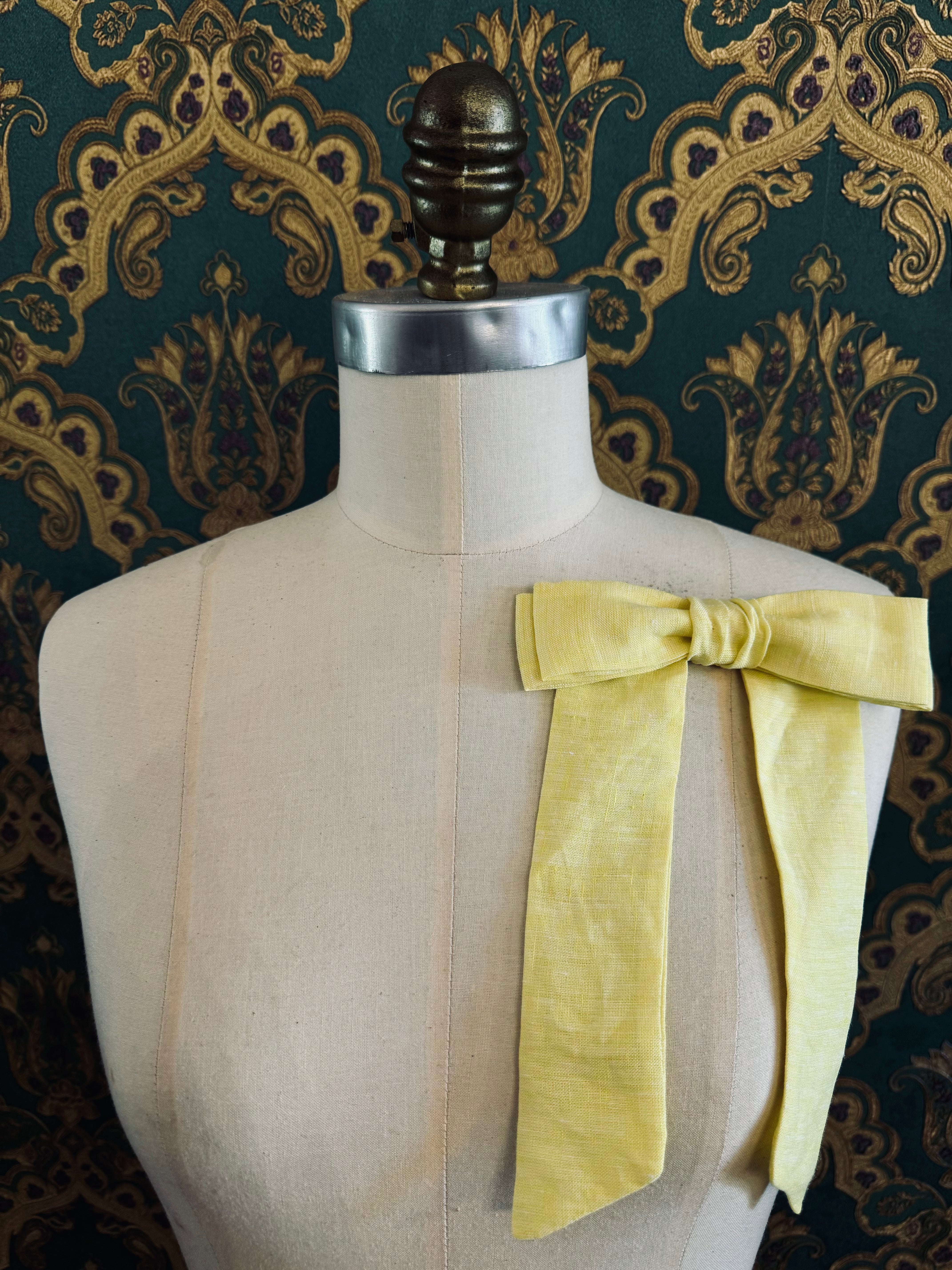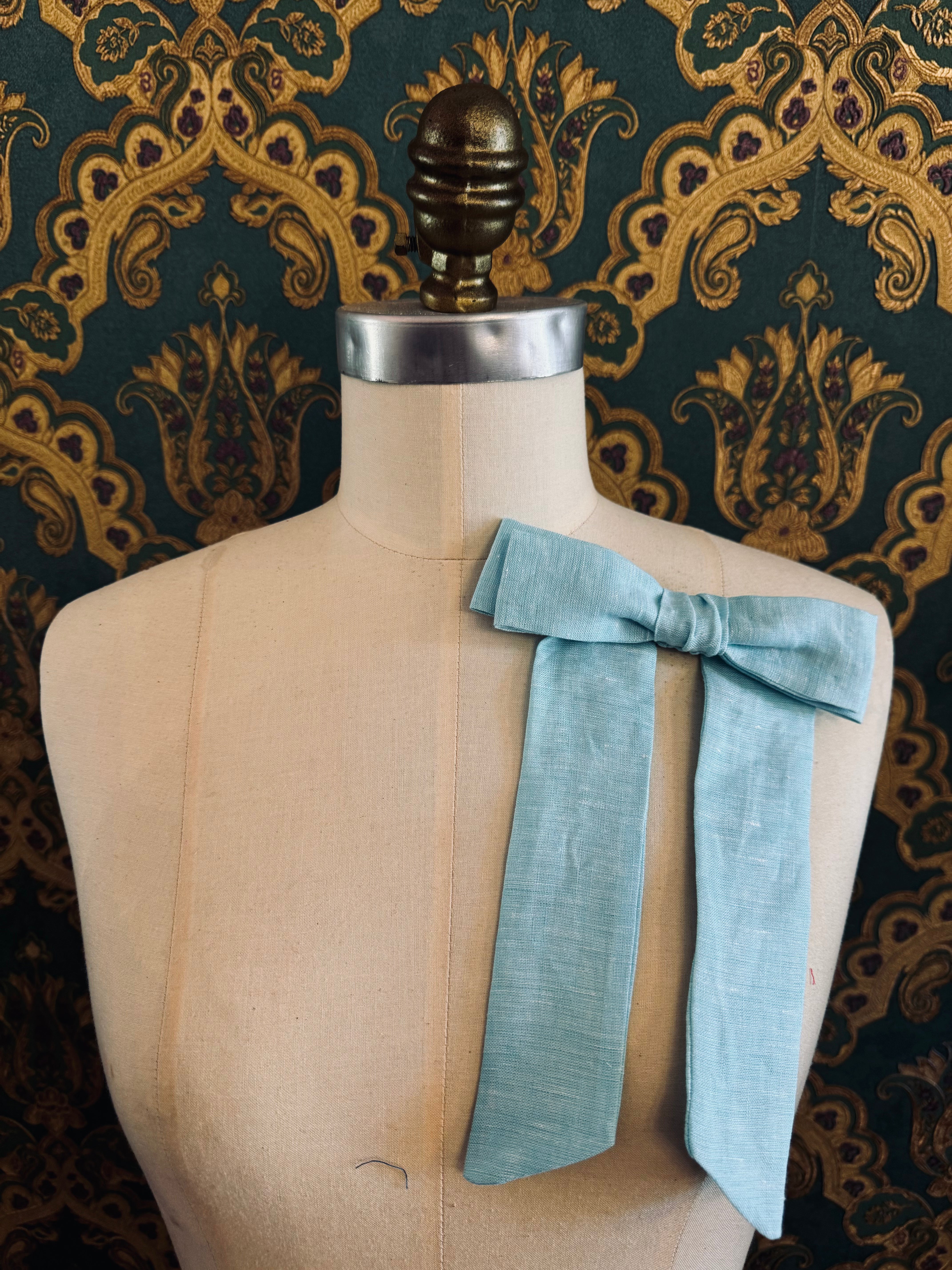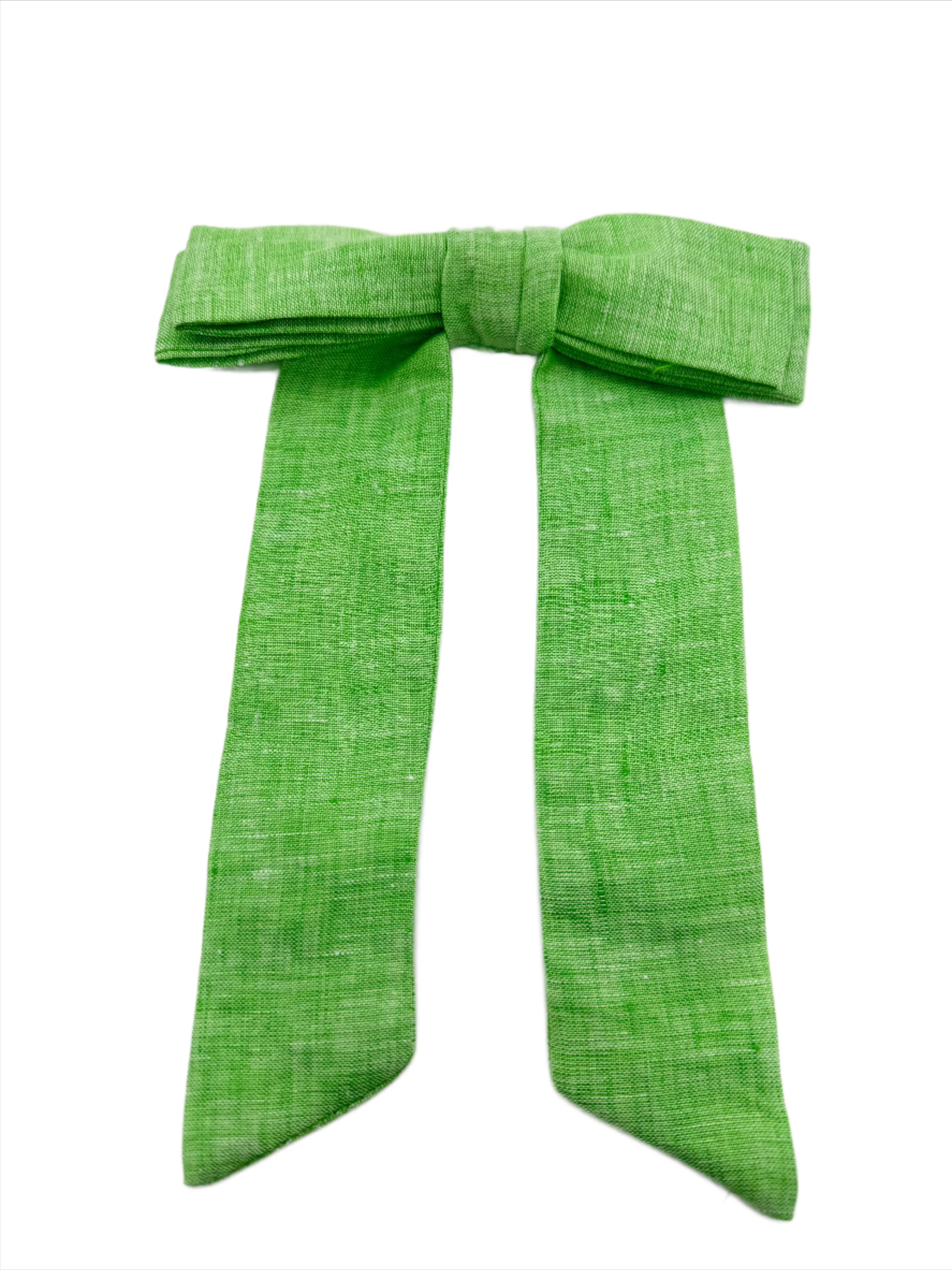 Made from 100% Italian linen, these bows offer a luxurious texture and a subtle sophistication, available in an array of pastel hues to complement any outfit.